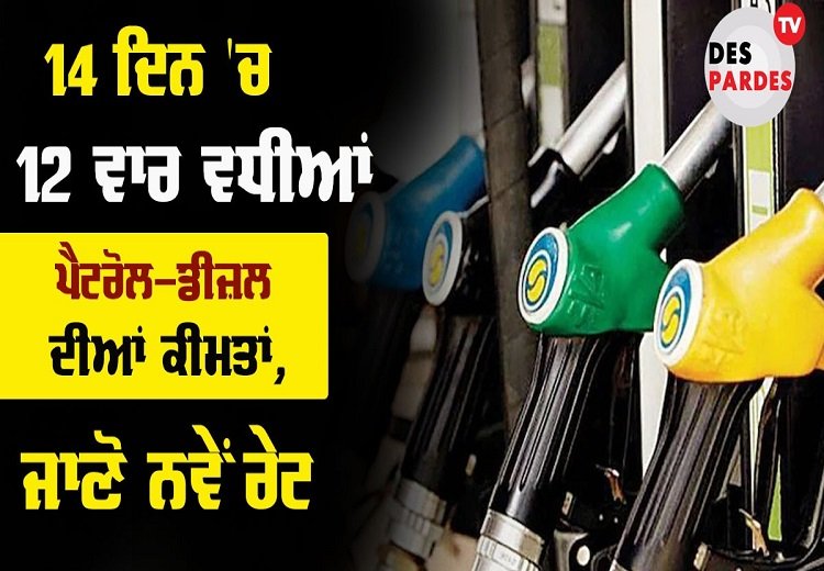 14 ਦਿਨ ‘ਚ 12ਵਾਰ ਵਧੀਆ ਪੈਟਰੋਲ-ਡੀਜ਼ਲ ਦੀਆਂ ਕੀਮਤਾਂ, ਜਾਣੋ ਨਵੇਂ ਰੇਟ