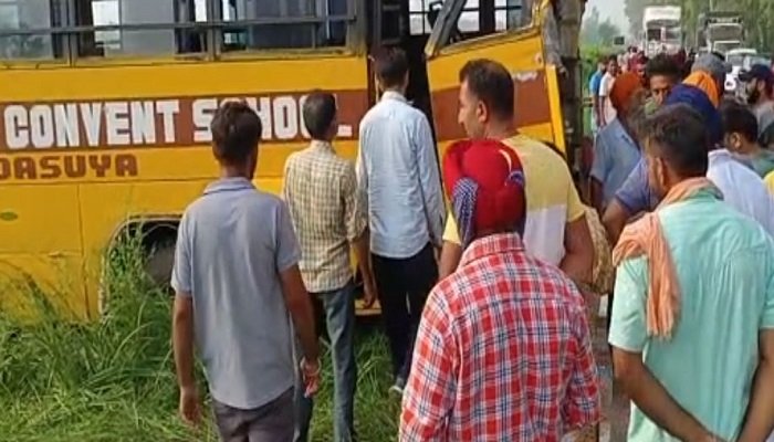 ਜਾਣਕਾਰੀ ਮੁਤਾਬਕ ਇੱਕ ਪ੍ਰਾਈਵੇਟ ਸਕੂਲ ਦੀ ਬੱਸ ਵੱਖ-ਵੱਖ ਪਿੰਡਾਂ ਤੋਂ ਬੱਚਿਆਂ ਨੂੰ ਲੈ ਕੇ ਸਕੂਲ ਜਾ ਰਹੀ ਸੀ। ਜਦੋਂ ਬੱਸ ਸਕੂਲ ਤੋਂ ਥੋੜ੍ਹੀ ਦੂਰ ਰਿਲਾਇੰਸ ਪੈਟਰੋਲ ਪੰਪ ਦੇ ਕੋਲ ਪਹੁੰਚੀ ਤਾਂ ਪਿੱਛੇ ਤੋਂ ਆ ਰਹੇ ਤੇਜ਼ ਰਫਤਾਰ ਟੱਰਕ ਨੇ ਉਸ ਨੂੰ ਟੱਕਰ ਮਾਰ ਦਿੱਤੀ। ਇਸ ਕਾਰਨ ਬੱਸ ਪਿੱਛੇ ਤੋਂ ਬੁਰੀ ਤਰ੍ਹਾਂ ਨੁਕਸਾਨੀ ਗਈ। ਘਟਨਾ ਨੂੰ ਲੈ ਕੇ ਜਾਂਚ ਕੀਤੀ ਜਾ ਰਹੀ ਹੈ।