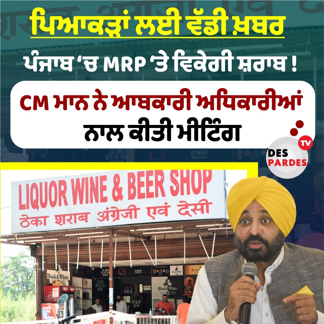 Home ਦੋਆਬਾ ਪਿਆਕੜਾਂ ਲਈ ਵੱਡੀ ਖ਼ਬਰ, ਪੰਜਾਬ ‘ਚ MRP ‘ਤੇ ਵਿਕੇਗੀ ਸ਼ਰਾਬ !