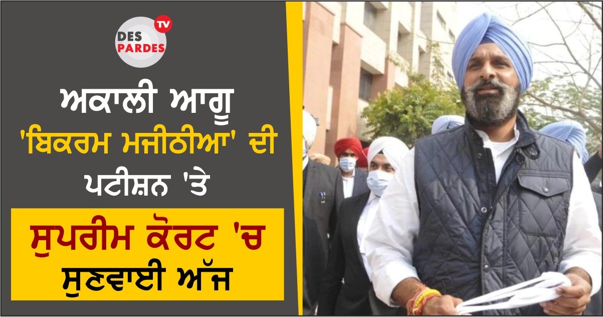 ਅਕਾਲੀ ਆਗੂ ‘ਬਿਕਰਮ ਮਜੀਠੀਆ’ ਦੀ ਪਟੀਸ਼ਨ ‘ਤੇ ਸੁਪਰੀਮ ਕੋਰਟ ‘ਚ ਸੁਣਵਾਈ ਅੱਜ