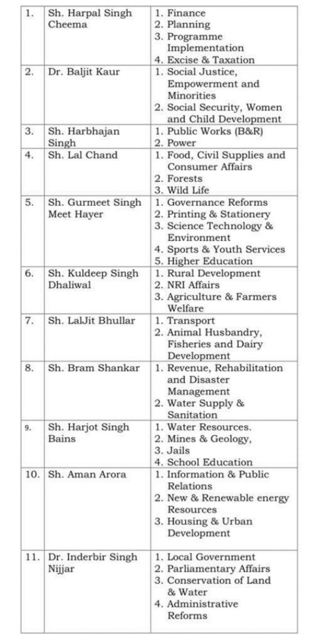 ਮਾਨ ਸਰਕਾਰ ਦੀ ਕੈਬਨਿਟ ਤਿਆਰ, ਜਾਣੋ ਕਿਸ ਮੰਤਰੀ ਨੂੰ ਸੌਂਪਿਆ ਗਿਆ ਵਿਭਾਗ