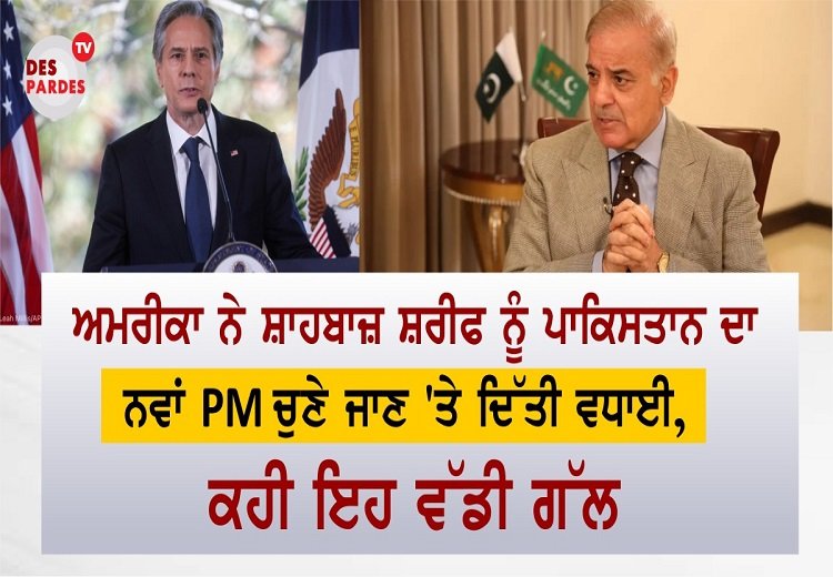 ਅਮਰੀਕਾ ਨੇ ਸ਼ਾਹਬਾਜ਼ ਸ਼ਰੀਫ ਨੂੰ ਪਾਕਿਸਤਾਨ ਦਾ ਨਵਾਂ ਪ੍ਰਧਾਨ ਮੰਤਰੀ ਚੁਣੇ ਜਾਣ ‘ਤੇ ਦਿੱਤੀ ਵਧਾਈ, ਕਹੀ ਇਹ ਵੱਡੀ ਗੱਲ