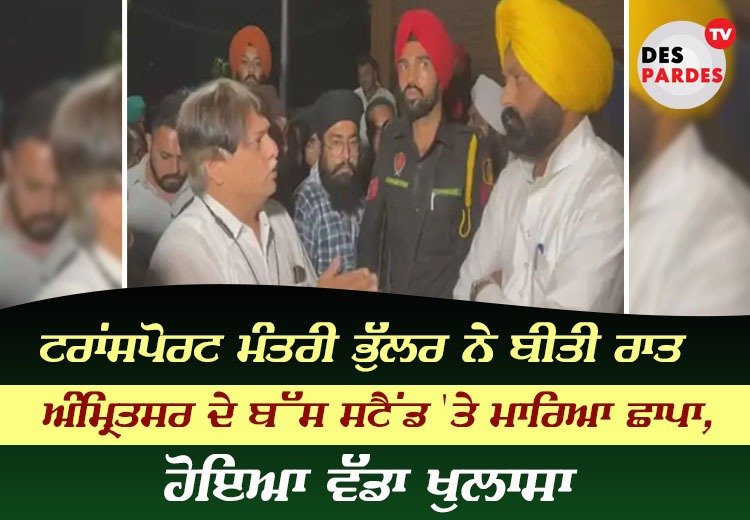 Home ਦੋਆਬਾ ਟਰਾਂਸਪੋਰਟ ਮੰਤਰੀ ਭੁੱਲਰ ਨੇ ਬੀਤੀ ਰਾਤ ਅੰਮ੍ਰਿਤਸਰ ਦੇ ਬੱਸ ਸਟੈਂਡ ‘ਤੇ ਮਾਰਿਆ...
